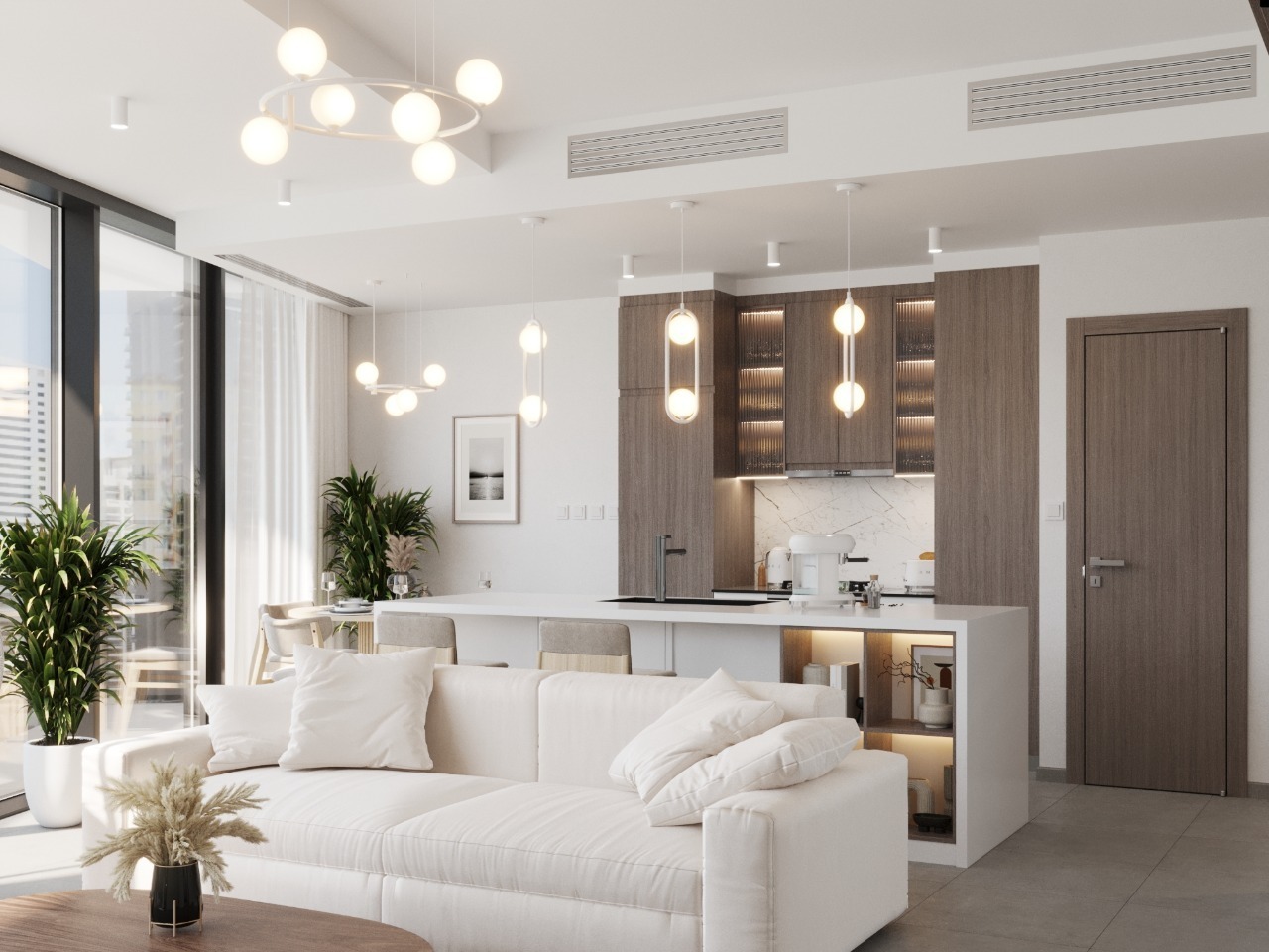 The Private Apartment project by MOI Design, nestled in the heart of Dubai Marina at 1407 Stella Maris, exemplifies the artistry of residential renovation. With a modest size of 1300 square feet, this space was transformed into a haven of modern elegance and functionality.